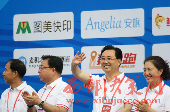蘭州市委副書記、蘭州市政府市長(zhǎng)欒克軍向運(yùn)動(dòng)員揮手致意(杜杰 攝)