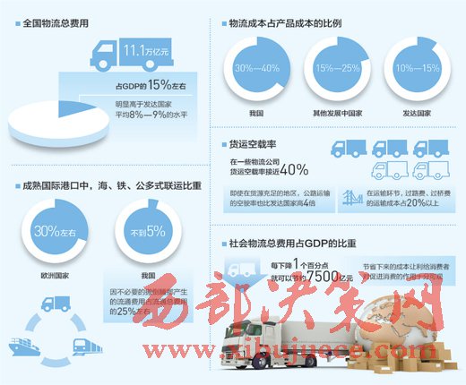 單線成本不高,但綜合成本高,主因在于不必要的搬倒騰挪而產(chǎn)生的流通費用。一些物流公司的貨車空載率近40%,比發(fā)達國家高4倍甚至更多,一邊是“車等貨”,一邊是“貨等車”