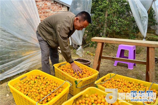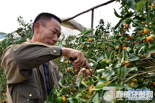 近年來(lái),廣西融安縣因地制宜,把金桔列為扶貧增收的重要產(chǎn)業(yè),通過(guò)農(nóng)業(yè)獎(jiǎng)補(bǔ)政策、專業(yè)種植技術(shù)培訓(xùn)等鼓勵(lì)貧困戶種植金桔,助力脫貧。融安縣大將鎮(zhèn)雅仕村的貧困戶漆昭賢,曾常年在外地打工,生活條件艱苦。2014年在縣里政策引導(dǎo)下,他返鄉(xiāng)種植金桔,并獲得專項(xiàng)補(bǔ)貼和無(wú)息貸款,連續(xù)三年參加縣農(nóng)業(yè)局等單位舉辦的種植技術(shù)培訓(xùn)班。如今,漆昭賢不僅在自己的地里種金桔,還承包了周?chē)r(nóng)戶的土地,種植面積十余畝,今年預(yù)計(jì)產(chǎn)量可達(dá)16000斤,純收入有望達(dá)到4萬(wàn)元。記者李絢麗攝