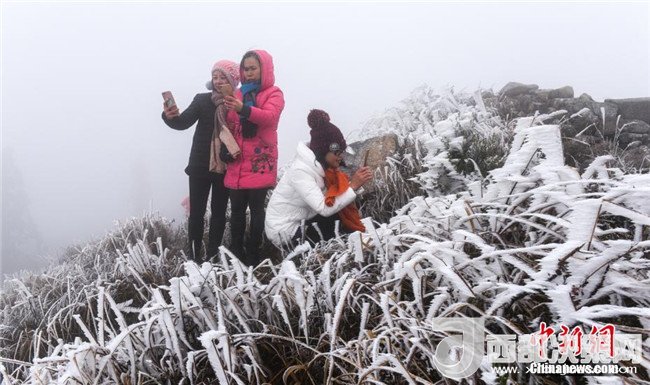 12月17日,福建省長汀縣天井山迎來首場霧凇,吸引不少游客前來觀賞。根據(jù)天氣預(yù)報顯示,未來的一周,長汀縣最低氣溫低至零下2攝氏度,部分高海拔地區(qū)將出現(xiàn)凍雨現(xiàn)象。 (張平 攝)