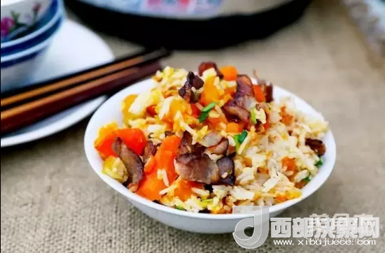 主料:南瓜200克;大米200克;胡蘿卜200克;醬肉100克。