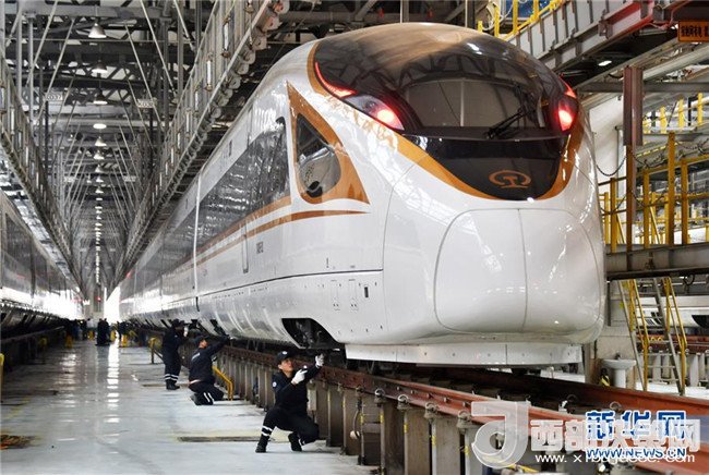 12月27日,天津動車客車段動車運用所工作人員對“復(fù)興號”動車組進行巡檢,為鐵路調(diào)圖做好安全保障。從鐵路部門了解到,全國鐵路將于12月28日起實施新的列車運行圖。(楊寶森 攝)