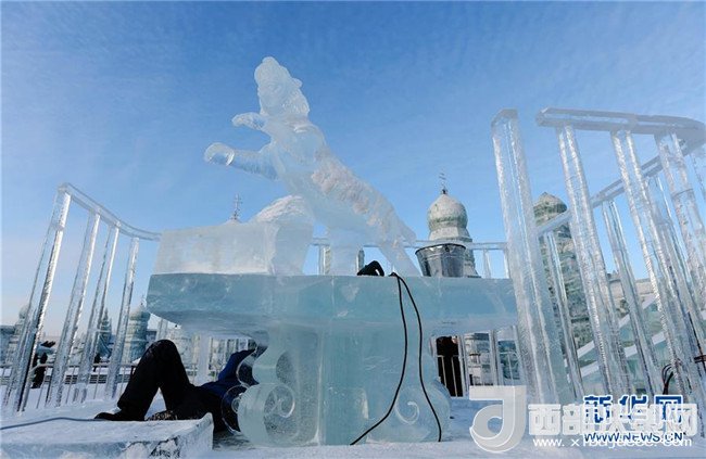 1月3日,在哈爾濱冰雪大世界園區(qū),冰雕選手在進行創(chuàng)作。當日,在哈爾濱冰雪大世界園區(qū)內(nèi)舉行的國際組合冰冰雕比賽進入第四天。經(jīng)過來自世界各地的冰雕選手悉心雕琢,一塊塊冰出落成精美的藝術(shù)作品,仿佛晶瑩剔透的出“冰”芙蓉。(記者 王建威 攝)