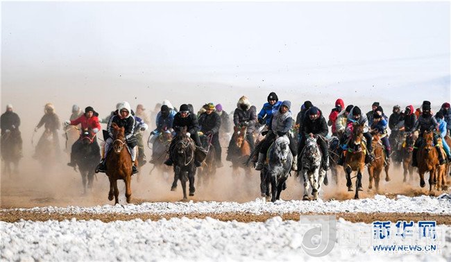 1月16日,在內(nèi)蒙古錫林浩特鳳凰馬場,牧民們進行速度賽馬。