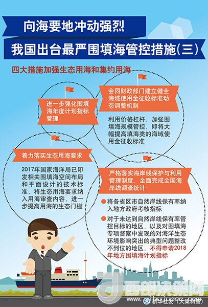 ——著力落實生態(tài)用海要求,2017年國家海洋局已印發(fā)相關(guān)圍填??臻g布局和平面設(shè)計的技術(shù)標準,將生態(tài)用海要求納入用海審查內(nèi)容,進一步提高用海的生態(tài)門檻。
