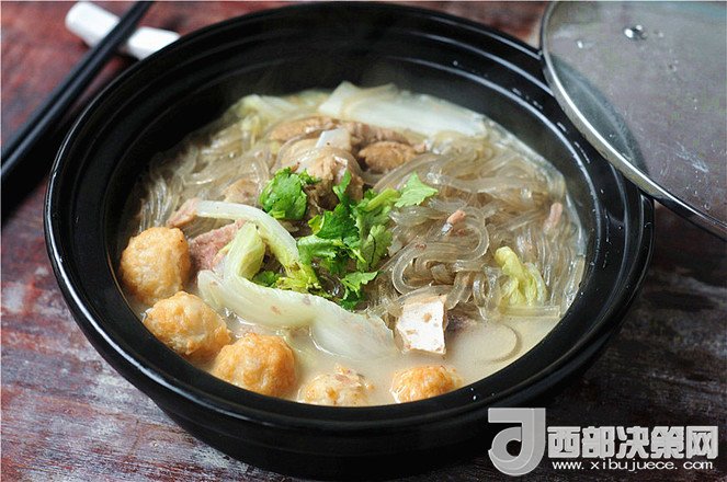 8.煮至丸子變大完全熟透,將排骨湯和排骨一起放入湯里