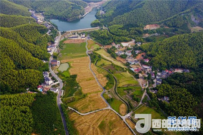 俯瞰浙江省安吉縣上墅鄉(xiāng)劉家塘村的美麗鄉(xiāng)村景色(2017年6月8日攝)。安吉縣大力開展美麗鄉(xiāng)村建設(shè),讓青山綠水成為當?shù)?ldquo;金名片”。記者 張鋮 攝