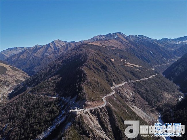 在四川省阿壩藏族羌族自治州小金縣,汽車行駛在山腰的公路上(1月24日攝)。記者才揚攝