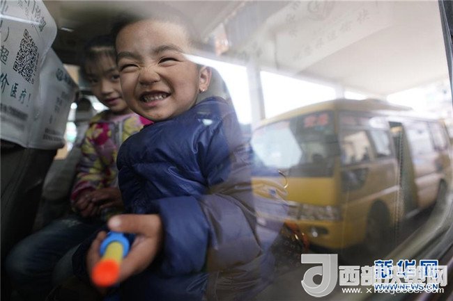小朋友在福建省永安市小陶鎮(zhèn)乘坐村鎮(zhèn)公交(1月26日攝)。記者邢廣利攝