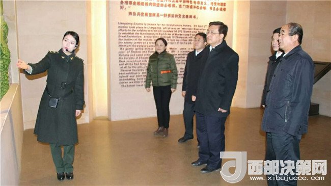 西部決策網(wǎng)-西部大開發(fā)訊(帥華鋒 通訊員 馬存福 漆小燕) 2018年2月8日,甘肅省檢察院黨組書記、檢察長(zhǎng)朱玉一行參觀兩當(dāng)兵變紀(jì)念館。隴南市委常委、政法委書記郭建博、市人民檢察院檢察長(zhǎng)魏剛、兩當(dāng)縣委書記梁英陪同參觀,緬懷革命先烈、瞻仰紅色革命遺跡。