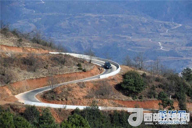 尋甸回族彝族自治縣羊街鎮(zhèn)多合村連接金所街道新哨村的盤(pán)山公路(2月19日攝)。