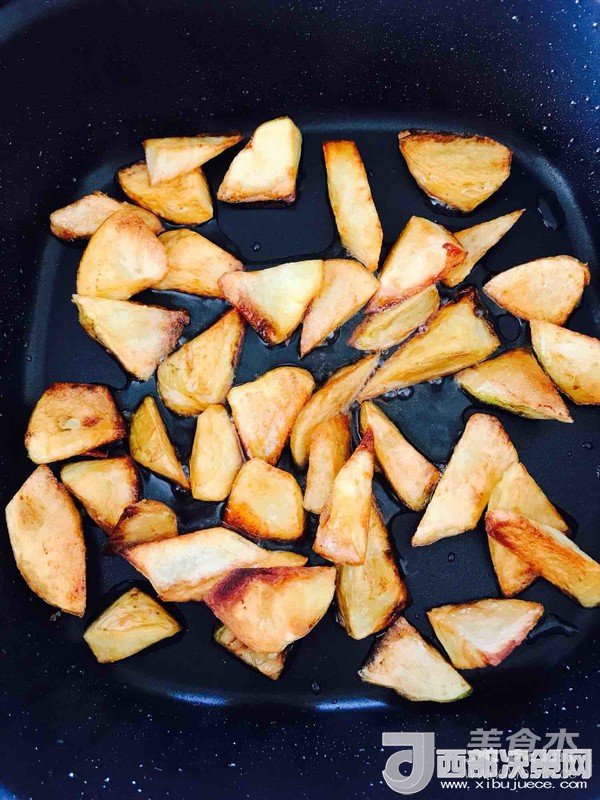 1、前期煎制要保持小火,土豆才會金黃,火大就黑了,火大就糊了,火大外面焦了里面還不熟,切記切記!還要要記得每面都沾上油,每面都要煎