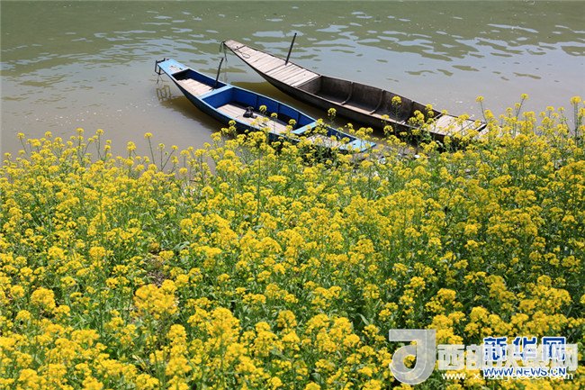 當(dāng)日,陽光燦爛,氣溫回升,安徽省黃山市歙縣境內(nèi)的石潭村、山水畫廓新安江、大洲源等地種植的油菜花陸續(xù)盛開,吸引著全國各地的游客到此觀光旅游。新華網(wǎng)發(fā)(潘成 攝)