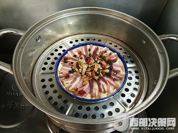 2、蒸制的時候,千張咸肉中可以加入少許水,我沒有加水,蒸出來稍稍有些干。