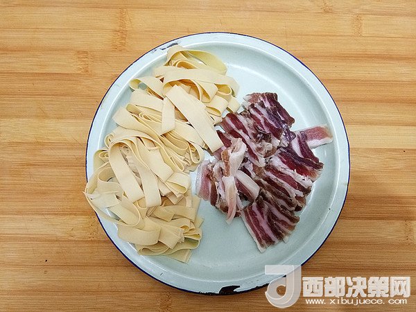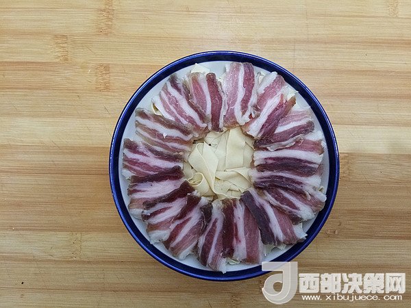 主料:咸肉 50克 千張 1張