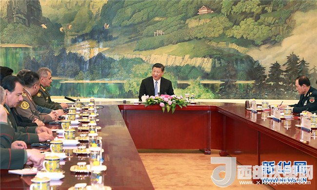 習近平說,明天將舉行上海合作組織擴員后的首次國防部長會議,相信在各方積極支持配合下,通過此次防長會,必將為上海合作組織發(fā)展充實新內(nèi)涵、增添新活力。