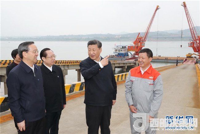 4月26日下午,中共中央總書記、國家主席、中央軍委主席習近平在武漢主持召開深入推動長江經(jīng)濟帶發(fā)展座談會并發(fā)表重要講話。這是座談會前,習近平于24日中午到興發(fā)集團宜昌新材料產(chǎn)業(yè)園,察看化工企業(yè)搬遷、改造以及碼頭復綠情況。新華社記者 鞠鵬 攝