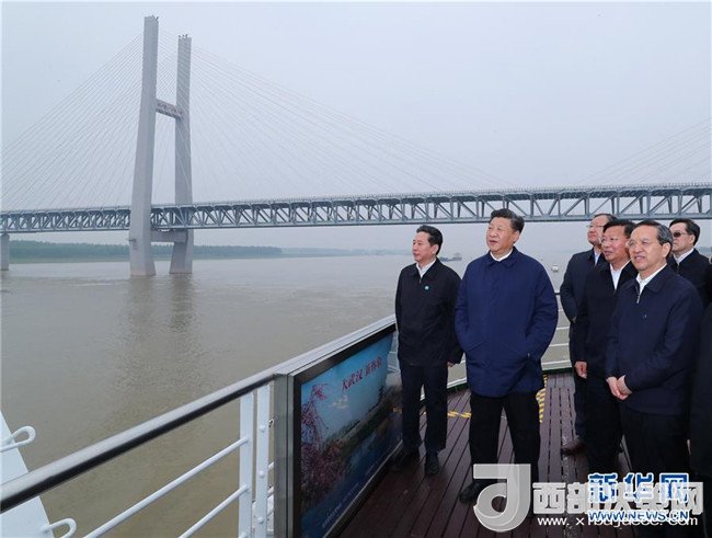 4月26日下午,中共中央總書記、國家主席、中央軍委主席習近平在武漢主持召開深入推動長江經(jīng)濟帶發(fā)展座談會并發(fā)表重要講話。這是座談會前,習近平于25日上午乘船沿江察看兩岸生態(tài)環(huán)境和發(fā)展建設情況。新華社記者 謝環(huán)馳 攝