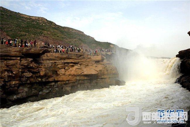 5月1日,游客在山西省臨汾市吉縣參觀(guān)壺口瀑布。