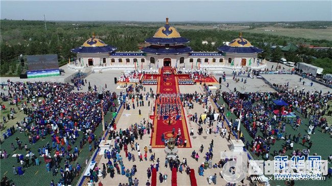 這是成吉思汗陵春季大祭現(xiàn)場(5月6日無人機拍攝)。新華社記者 達日罕 攝