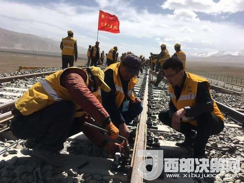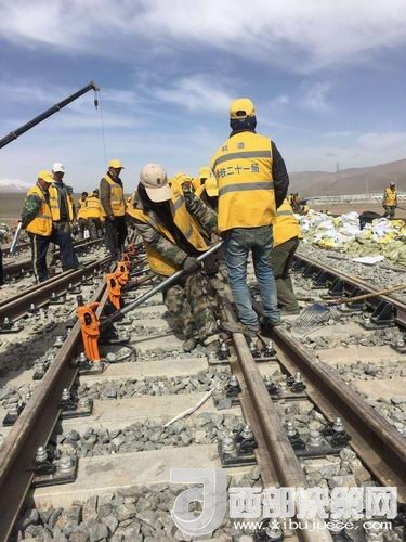 在玉珠峰車(chē)站施工現(xiàn)場(chǎng),600余名工人正在緊張的進(jìn)行螺紋道釘錨固定、搗道石、安裝枕木連接板等操作。橘黃色的工作服在遠(yuǎn)處皚皚雪山的映照下分外醒目和溫暖。中鐵二十一局格拉擴(kuò)能改造工程指揮部總工李先告訴記者:“這個(gè)車(chē)站的改造由車(chē)站北側(cè)增加2條到發(fā)線(xiàn),在車(chē)站的西側(cè)增加3股道的專(zhuān)用裝卸線(xiàn)。涉及到路基、橋涵、房建、軌道、通信、信號(hào)、電力7個(gè)專(zhuān)業(yè)。”