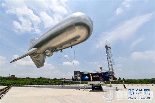 在光啟東莞生態(tài)園的研發(fā)基地,集廣域互聯(lián)網(wǎng)信息傳輸和光學(xué)監(jiān)控于一體的“云端號(hào)”準(zhǔn)備升空(2016年7月7日攝)。新華社記者毛思倩攝