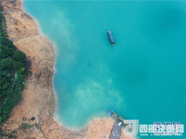 浙江省麗水市云和縣仙宮湖景區(qū)的電動(dòng)畫舫船行駛在湖區(qū)的水面上,景區(qū)用電動(dòng)游船替代了傳統(tǒng)的柴油船(5月31日無人機(jī)拍攝)。