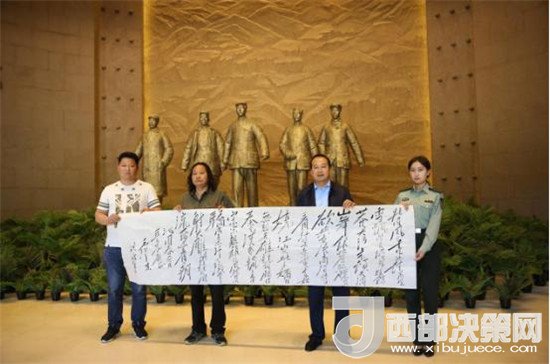 西部決策網(wǎng)—西部大開發(fā)訊(帥華鋒 通訊員 陳彥榮 齊彩云)在這綠意盎然、鳥語花香的美好時節(jié),“紅色南梁”迎來了中國“毛體”書法家協(xié)會會員、中國硬筆書法協(xié)會會員、中國書畫家協(xié)會會員、金陵書畫院理事、江西廬山毛主席書法研究院高級研究員、中國毛澤東詩詞研究會會員、韶山毛澤東書法藝術(shù)研究會會員王洪濤老師,他帶著對華池革命老區(qū)的深情厚誼和對劉志丹、謝子長、習(xí)仲勛等陜甘邊革命先輩舍生忘死、救民出水火的崇敬之意,長途跋涉一路輾轉(zhuǎn),向南梁革命紀(jì)念館捐贈毛主席詩詞書法作品。
