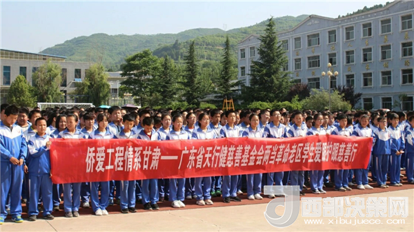 西部決策網(wǎng)——西部大開發(fā)訊(帥華鋒 通訊員 馬存福 漆小燕)2018年6月6日,第二十三個(gè)“全國愛眼日”當(dāng)天, “僑愛工程 情系甘肅”——廣東省天行健慈善基金會(huì)兩當(dāng)革命老區(qū)學(xué)生愛眼護(hù)眼慈善行啟動(dòng)儀式在隴南市兩當(dāng)縣香泉中學(xué)隆重舉行。國務(wù)院僑務(wù)辦公室國內(nèi)司張凌處長(zhǎng)、國務(wù)院僑務(wù)辦公室文化司李永清副處長(zhǎng),國務(wù)院僑務(wù)辦公室國內(nèi)司鄒傳彪副處長(zhǎng),甘肅省僑辦僑務(wù)工作處尹清敏處長(zhǎng),隴南市政府副秘書長(zhǎng)、市外僑辦主任馮虎明,隴南市衛(wèi)計(jì)委副主任孫旭東,兩當(dāng)縣人民政府副縣長(zhǎng)陳矛木,中山大學(xué)中山眼科中心王德才教授,中山大學(xué)中山眼科中心陳林興醫(yī)生,廣東省天行健慈善基金會(huì)創(chuàng)會(huì)會(huì)長(zhǎng)蔡光等領(lǐng)導(dǎo)及香泉中學(xué)全校師生800余人出席了本次啟動(dòng)儀式。