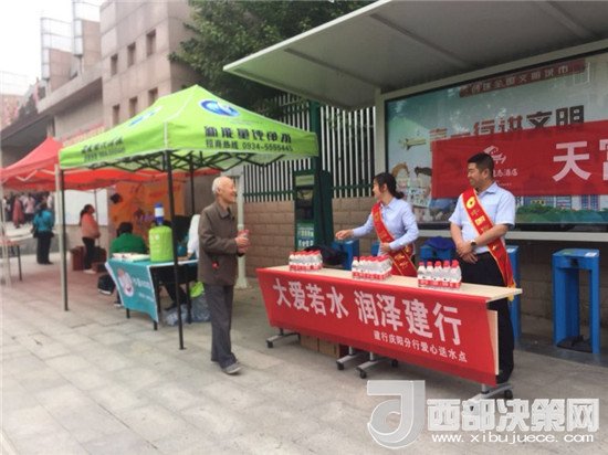 西部決策網(wǎng)——西部大開發(fā)訊(帥華鋒 通訊員 齊彩云 嵇祥)6月7日,建行慶陽分行組織員工,在這個特別的日子開展了“大愛若水,潤澤建行”助力高考學(xué)子活動,在高考期間,考生及家長可在我行設(shè)立的補水站處憑準(zhǔn)考證領(lǐng)取1瓶礦泉水,為寒窗苦讀的學(xué)子與焦急等待的家長送去了關(guān)懷。