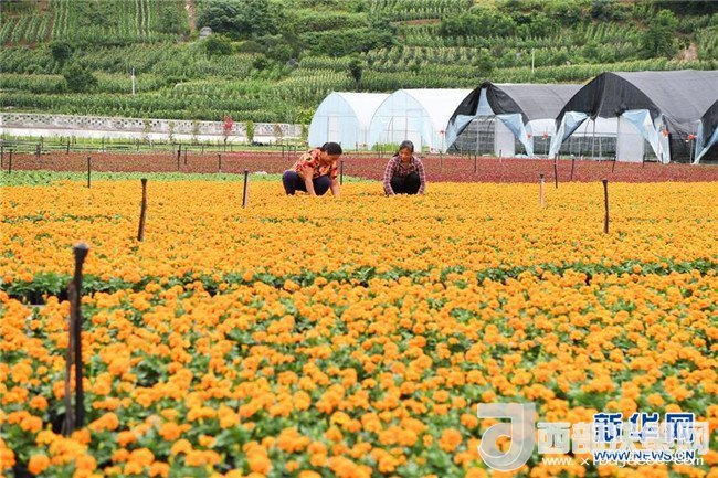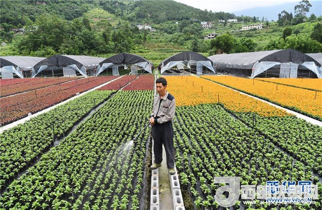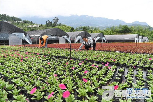 6月12日,艷山紅村村民在村里的花卉基地勞作。近年來,重慶市武隆區(qū)羊角鎮(zhèn)艷山紅村探索“公司+村集體+農(nóng)戶+基地”的經(jīng)營模式,發(fā)展花卉種植等產(chǎn)業(yè),實現(xiàn)了“農(nóng)村資源變資產(chǎn)、資金變股金、農(nóng)民變股東”,幫助當?shù)剞r(nóng)民通過保底分紅、效益分紅、務(wù)工收益等方式脫貧增收。新華社記者王全超攝