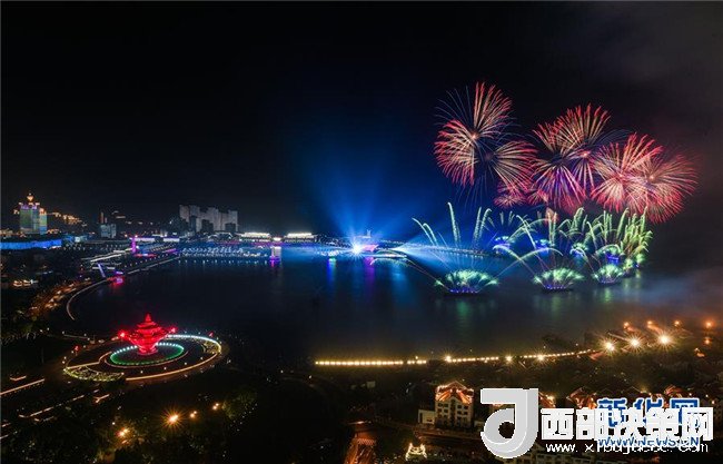 6月9日至10日,上海合作組織青島峰會在山東青島召開。這是6月9日晚在青島舉行的《有朋自遠方來》燈光焰火藝術表演。新華社記者 徐昱 攝
