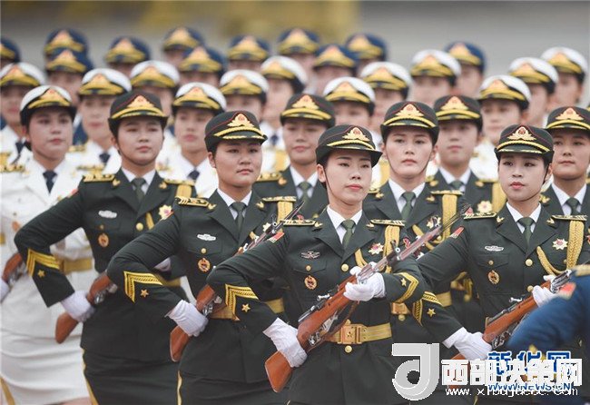 6月6日下午,國家主席習近平在人民大會堂東門外廣場舉行儀式,歡迎吉爾吉斯斯坦總統(tǒng)熱恩別科夫對中國進行國事訪問。這是在歡迎儀式上首次增加的三軍儀仗隊女兵方陣。新華社記者 陳曄華 攝