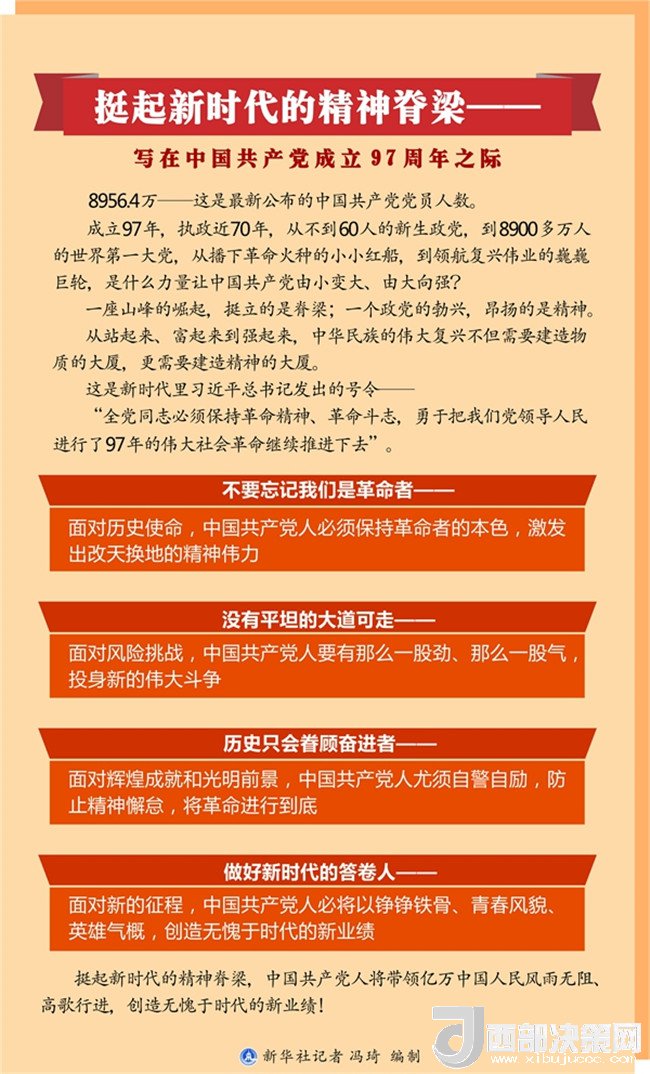 挺起新時代的精神脊梁,中國共產(chǎn)黨人將帶領(lǐng)億萬中國人民風(fēng)雨無阻、高歌行進(jìn),創(chuàng)造無愧于時代的新業(yè)績?。ㄓ浾撸黑w承、詹勇、張曉松、謝良、周文林、陳煒偉、朱基釵、吳晶、姜瀟、王卓倫、榮啟涵)