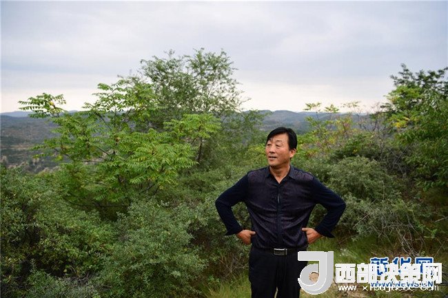 閆志雄在陜西延安市吳起縣南溝村的山坡上遠(yuǎn)眺一片綠色的山林(2017年9月13日攝)。閆志雄帶領(lǐng)村民植樹造林,百折不撓,成為這個“退耕還林第一縣”的“綠色革命”先鋒。新華社記者 邵瑞 攝