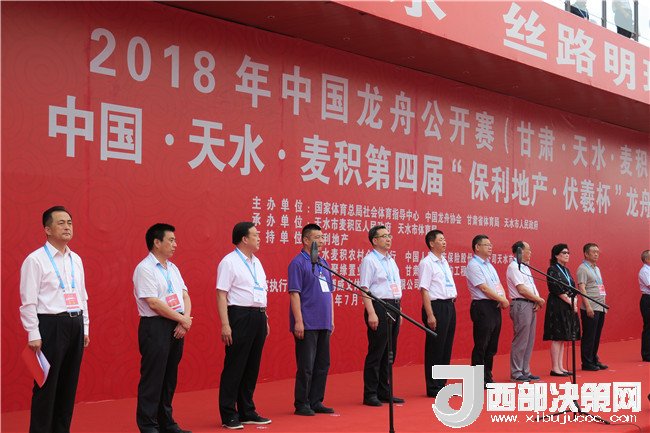 9時(shí)整,2018中國龍舟公開賽(天水麥積站)暨保利地產(chǎn)“伏羲杯”第四季龍舟大賽正式拉開序幕,來自全國及甘肅省的近25家代表隊(duì)展開激烈角逐。中國龍舟協(xié)會(huì)副主席劉北劍,天水市人大常委會(huì)主任、市委秘書長(zhǎng)蔣曉強(qiáng),天水市人大常委會(huì)原主任、市關(guān)工委主任李世榮,市委常委、常務(wù)副市長(zhǎng)趙四輩,市委常委、宣傳部部長(zhǎng)張建杰,市人大常委會(huì)副主任張克強(qiáng),副市長(zhǎng)、市公安局局長(zhǎng)馬瑛,市政協(xié)副主席屈光平,市政協(xié)副主席、麥積區(qū)委書記張智明,國家體育總局社會(huì)體育指導(dǎo)中心二部主任、國際龍舟協(xié)會(huì)副秘書長(zhǎng)、亞洲和中國龍舟協(xié)會(huì)秘書長(zhǎng)余漢橋,省體育局群眾體育處處長(zhǎng)武志峰,市人大常委會(huì)秘書長(zhǎng)楊坤,市政府副秘書長(zhǎng)、外事僑務(wù)辦主任張有信,麥積區(qū)人大常委會(huì)主任賈應(yīng)珍等出席開幕式,并為龍舟點(diǎn)睛。