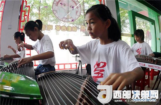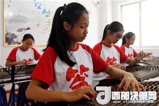 7月12日,孩子們在廣西欽州市一家古箏培訓(xùn)中心練習。