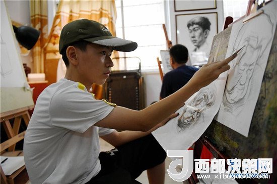7月12日,在廣西欽州市一家書畫培訓(xùn)中心,一名男孩在練習素描。