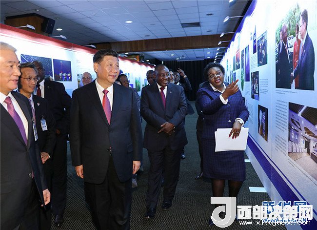 兩國元首共同前往展覽廳,依次觀看展示非洲科技旗艦項目、南非科技成就、中國科技成就、中南科技合作成果的圖片。南非平方公里陣列射電望遠鏡是包括中國在內(nèi)多國科學(xué)家參與的重點項目,也是中南重點科技合作項目,兩國元首仔細聽取有關(guān)介紹,并勉勵雙方科學(xué)家繼續(xù)努力,把項目建設(shè)好。參觀后,兩國元首出席北汽投資項目首輛汽車下線視頻連線儀式。