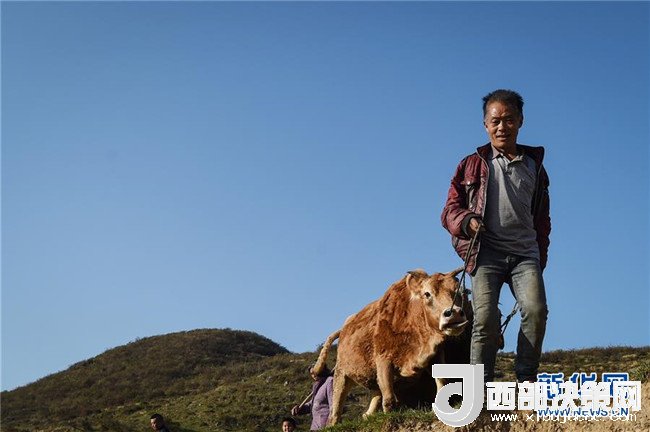 貴州畢節(jié)市七星關(guān)區(qū)長春堡鎮(zhèn)埡關(guān)村農(nóng)民張祥印在放牛(2015年11月14日攝)。張祥印是當(dāng)?shù)氐呢毨?,年均純收入只有一千多元?015年,七星關(guān)區(qū)推出精準(zhǔn)扶貧套餐,張祥印選擇了養(yǎng)牛,走上脫貧致富之路。新華社記者 歐東衢 攝