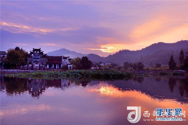8月4日,色彩絢麗的朝霞,映射安徽皖南西遞古村。