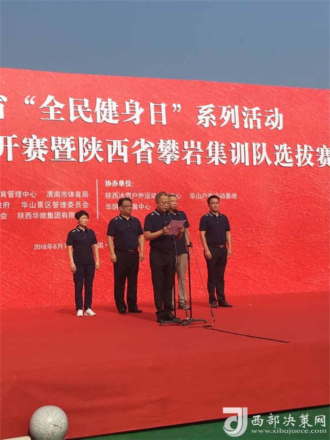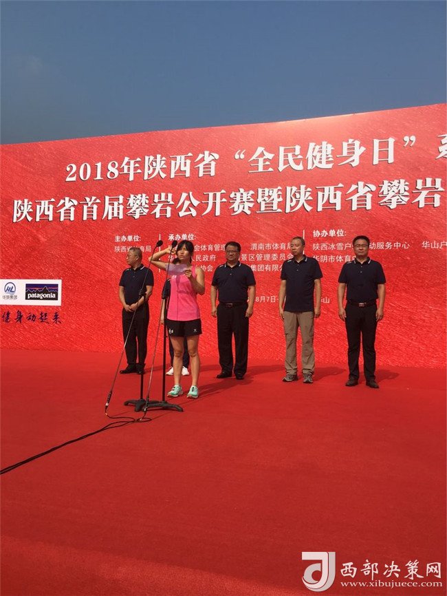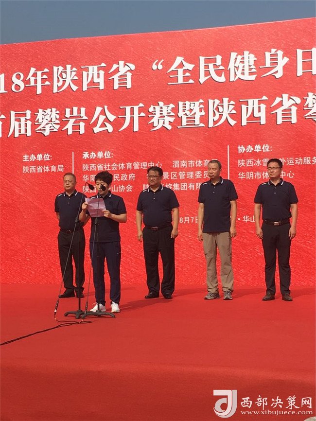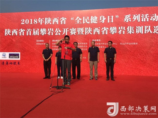 開(kāi)幕儀式上,陜西華山旅游集團(tuán)有限公司副總經(jīng)理趙江峰代表華山旅游集團(tuán)有限公司致詞,他表示,向此次攀巖公開(kāi)賽的開(kāi)幕表示熱烈地祝賀,向出席開(kāi)幕式地各位領(lǐng)導(dǎo)、各位來(lái)賓、運(yùn)動(dòng)員、裁判員表示熱烈地歡迎,向籌備的工作人員表示衷心的感謝!通過(guò)舉辦這項(xiàng)活動(dòng),旨在促進(jìn)陜西省旅游產(chǎn)業(yè)與體育事業(yè)的高度融合,彰顯華山旅游品牌形象和影響力,以此推動(dòng)攀巖運(yùn)動(dòng)在省內(nèi)的蓬勃發(fā)展。
