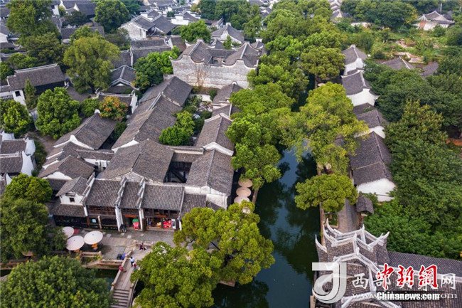 8月11日,航拍無(wú)錫惠山古鎮(zhèn),典型的江南民居錯(cuò)落有致,透出古樸韻味。