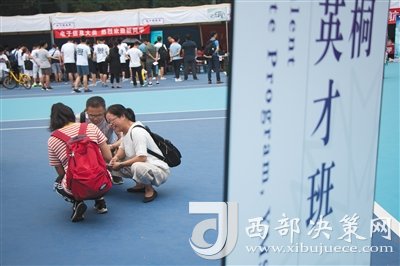 昨日,新生及其家長在丘成桐數(shù)學英才班報到處附近休息。