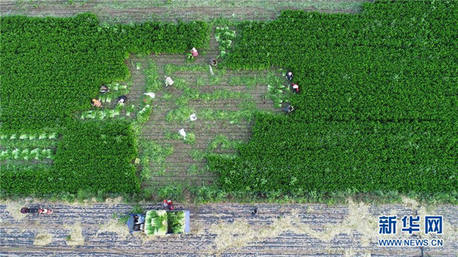 農(nóng)民在寧夏固原市西吉縣興隆鎮(zhèn)收割芹菜(8月9日無人機航拍)。地處西北內(nèi)陸的寧夏,既有高山大漠的雄渾,又有“塞上江南”的溫婉,自然造化之美自古入詩入畫。自治區(qū)成立60年里,尤其是黨的十八大以來,這片熱土上的人民用勤勞和智慧,發(fā)展特色農(nóng)業(yè)、建設(shè)美麗鄉(xiāng)村、樹立文明鄉(xiāng)風(fēng),繪就一幅全新、壯美的鄉(xiāng)村振興新畫卷。新華社記者王鵬攝