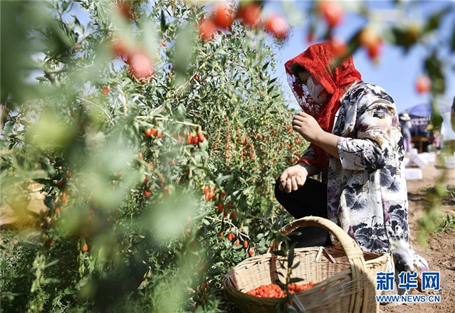 農(nóng)民在寧夏吳忠市同心縣潤德莊園枸杞基地采摘枸杞(6月22日攝)。地處西北內(nèi)陸的寧夏,既有高山大漠的雄渾,又有“塞上江南”的溫婉,自然造化之美自古入詩入畫。自治區(qū)成立60年里,尤其是黨的十八大以來,這片熱土上的人民用勤勞和智慧,發(fā)展特色農(nóng)業(yè)、建設(shè)美麗鄉(xiāng)村、樹立文明鄉(xiāng)風(fēng),繪就一幅全新、壯美的鄉(xiāng)村振興新畫卷。新華社記者王鵬攝