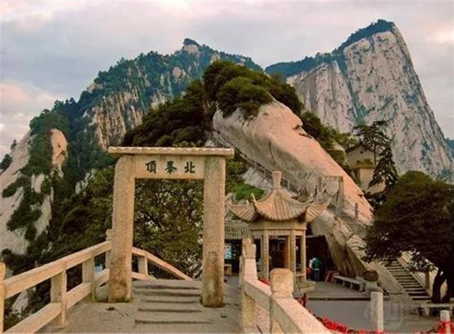 北峰海拔1614米,為華山主峰之一,因位置居北得名。北峰四面懸絕,上冠景云,下通地脈,巍然獨(dú)秀,有若云臺(tái),因此又名云臺(tái)峰。唐李白《西岳云臺(tái)歌送丹丘子》詩曾寫到:“三峰卻立如欲摧,翠崖丹谷高掌。白帝金精運(yùn)元?dú)?,石作蓮花云作臺(tái)。”