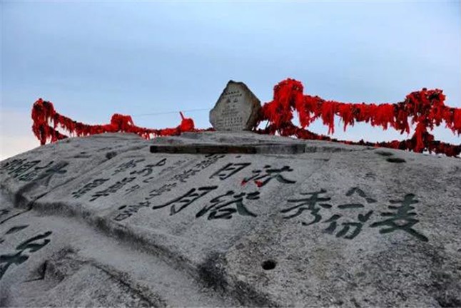 西峰海拔2082.6米,華山主峰之一,因位置居西得名。又因峰巔有巨石形狀好似蓮花瓣,古代文人多稱其為蓮花峰、芙蓉峰。袁宏道在他的《華山》中記述:“石葉上覆而橫裂”;徐霞客《游太華山日記》中也記述:“峰上石聳起,有石片覆其上,如荷花。”李白詩中有“石作蓮花云作臺(tái)”句,也當(dāng)指此石。