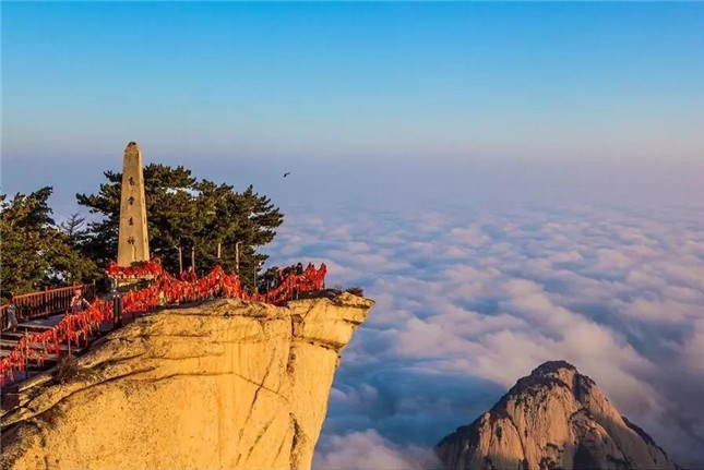 南峰海拔2154.9米,是華山最高主峰,也是五岳最高峰,古人尊稱它是“華山元首”。登上南峰絕頂,頓感天近咫尺,星斗可摘。舉目環(huán)視,但見群山起伏,蒼蒼莽莽,黃河渭水如絲如縷,漠漠平原如帛如綿,盡收眼底,使人真正領(lǐng)略華山高峻雄偉的博大氣勢(shì),享受如臨天界,如履浮云的神奇情趣。
