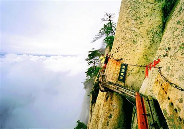 由于華山太險(xiǎn),所以唐代以前很少有人登臨。歷代君王祭西岳,都是在山下西岳廟中舉行大典?!妒酚洝份d,黃帝、虞舜都曾到華山巡狩。據(jù)記載,秦昭王時(shí)命工匠施鉤搭梯攀上華山。